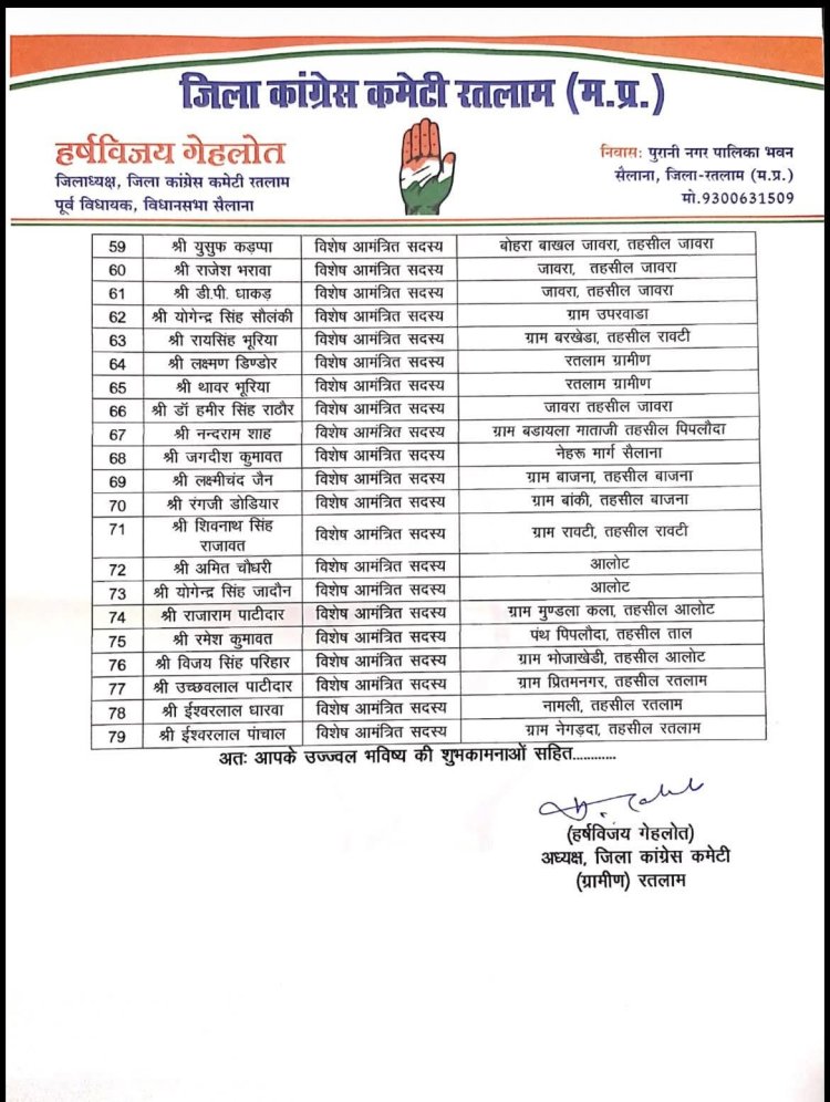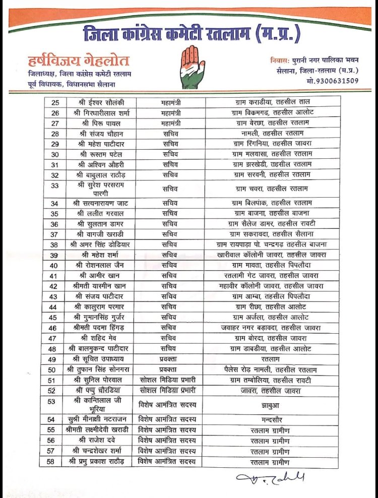 कांग्रेस की जिला कार्यकारिणी घोषित, गोंदीशंकर के बलवंत सिंह व जावरा के वरुण श्रोत्रिय महामंत्री बने